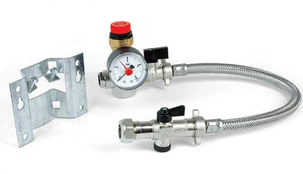 Sealed system kit includes – Filling Loop, Safety Relief Valve, Gauge, andMounting Bracket (upto 25L).