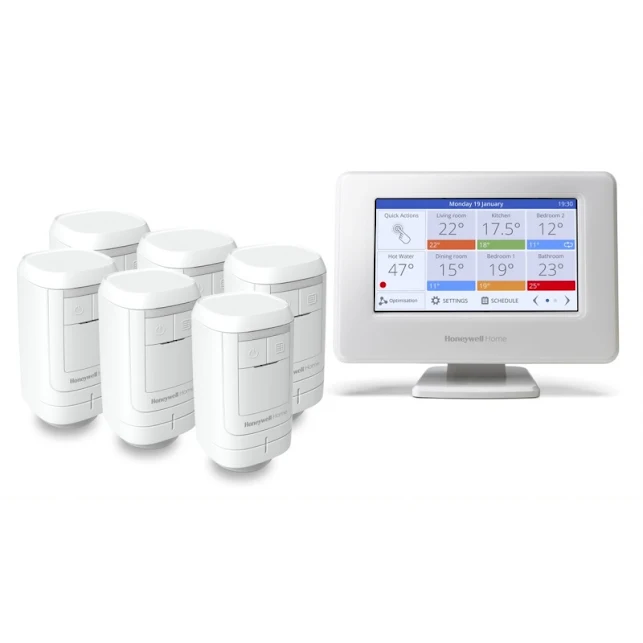 The ‘Honeywell Home evohome Essentials Pack’ has been designed to give you the absolute best value for money when buying multiple evohome items for your connected home. This pack includes everything you need to remotely control your heating and up to 6 radiators from your compatible smart phone, tablet, smart watch or 3rd party device (such as Amazon Echo) via Honeywell Home’s Total Connect Comfort Platform & App.