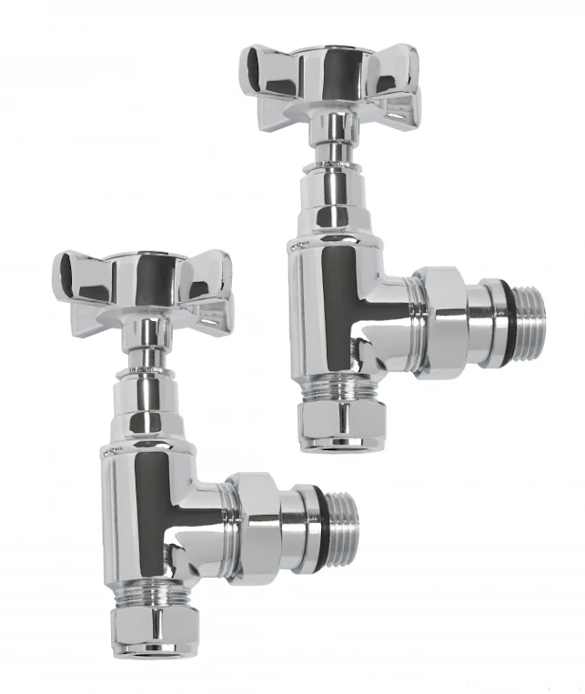 Manually controlled angled radiator valve and lockshield, suitable for use with any towel rail with 1/2″ tappings. Beautifully designed and engineered to a high standard, this valve pack is sure to complete the look of any traditional home bathroom.