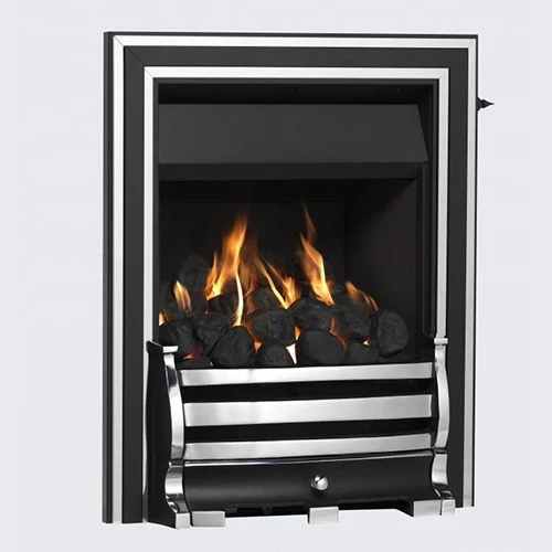 The Trueflame open fronted fire provides a convincing flame on the backdrop of a realistic coal fuel bed, which is complimented by a mix of radiant and convected heat, ensuring you feel the heat directly to maximise comfort. The Trueflame offers fireslide control for easy operation.